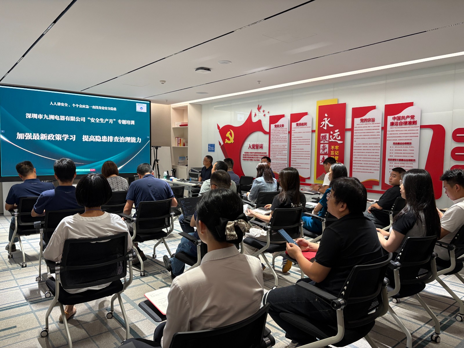 2025年6月,正值我國第24個(gè)全國 “安全生產(chǎn)月”,深圳九洲電器積極響應(yīng)國務(wù)院、省、市及九洲集團(tuán)安委會(huì)的安排部署,以 “人人講安全、個(gè)個(gè)會(huì)應(yīng)急 —— 查找身邊安全隱患” 為主題,深入開展了一系列形式多樣、內(nèi)容豐富的安全生產(chǎn)活動(dòng),全力營造安全氛圍,提升全員安全意識與應(yīng)急能力。