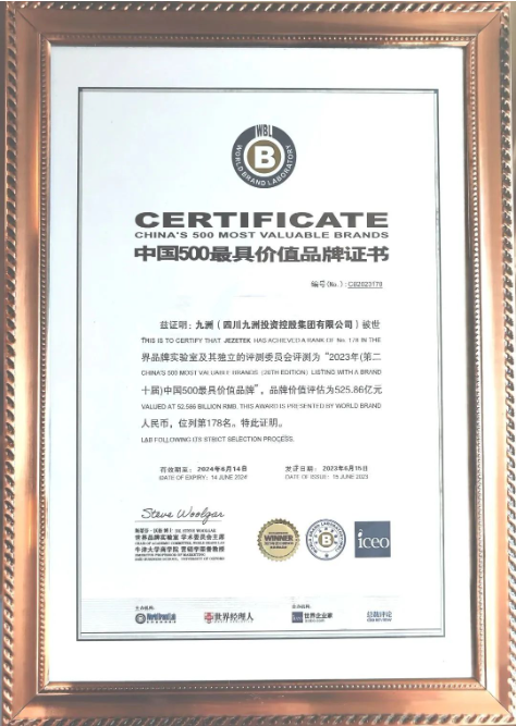 6月15日,由世界品牌實(shí)驗(yàn)室主辦的“第二十屆世界品牌大會(huì)”在北京舉辦。會(huì)上,發(fā)布了2023 年度 (第 20 屆)“中國(guó) 500 最具價(jià)值品牌”榜單。九洲集團(tuán)以525.86億元的品牌價(jià)值,位列第178名,品牌價(jià)值較上屆提升32.6%,排名上升5位。九洲集團(tuán)黨委副書記、總經(jīng)理孫仲代表公司到現(xiàn)場(chǎng)領(lǐng)獎(jiǎng)。