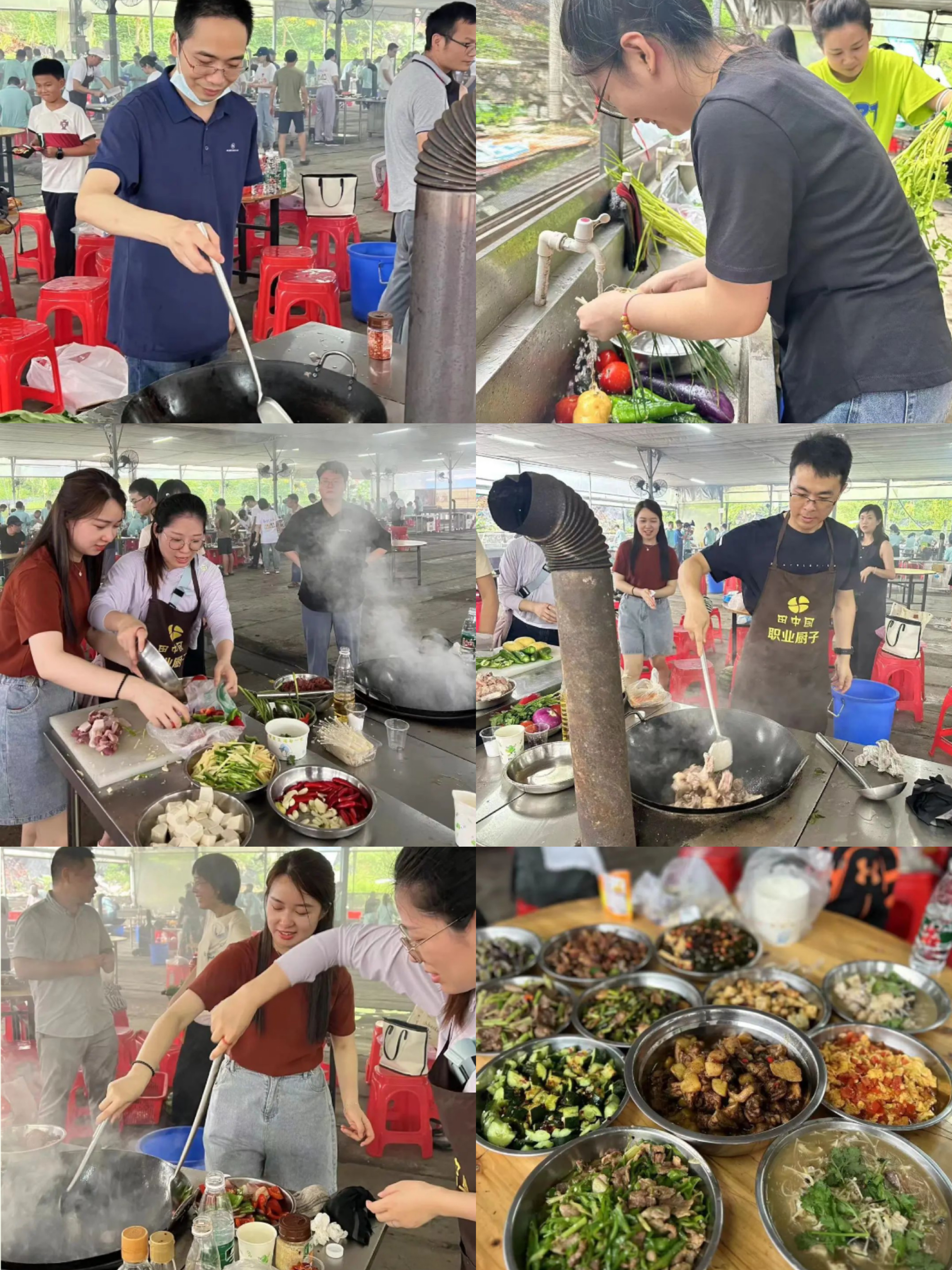 上午十點(diǎn),深九家人們來到深圳鳳凰山的團(tuán)建基地,大家開始擼起袖子一起加油干,忙得不亦樂乎,有條不紊地領(lǐng)食材、生火、洗菜、掌勺、包粽子……不一會(huì)兒,炊煙裊裊、香味四溢,一道道美味佳肴紛紛呈上餐桌。