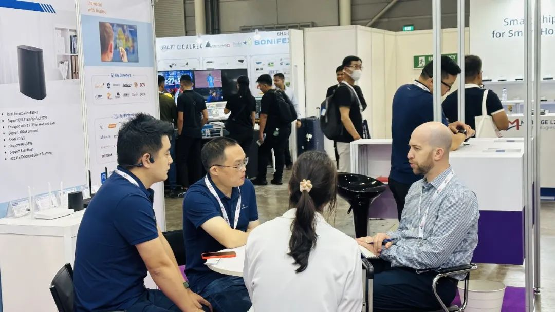 6月7日-9日,Asia Tech x Singapore新加坡科技展在新加坡博覽中心隆重舉辦,公司副總經(jīng)理夏兵及銷售團隊攜深圳九洲電器自主研發(fā)的智能電視終端和網(wǎng)絡接入設備5G CPE,Wi-Fi 6路由器,GPON&OTT家庭網(wǎng)關,4K AI STB等產(chǎn)品及解決方案亮相獅城,秉承“用九洲看世界”(Watch the world with Jiuzhou)的品牌理念,也承接著本次科技展致力于“重新定義技術,共創(chuàng)美好未來”的美好愿景。