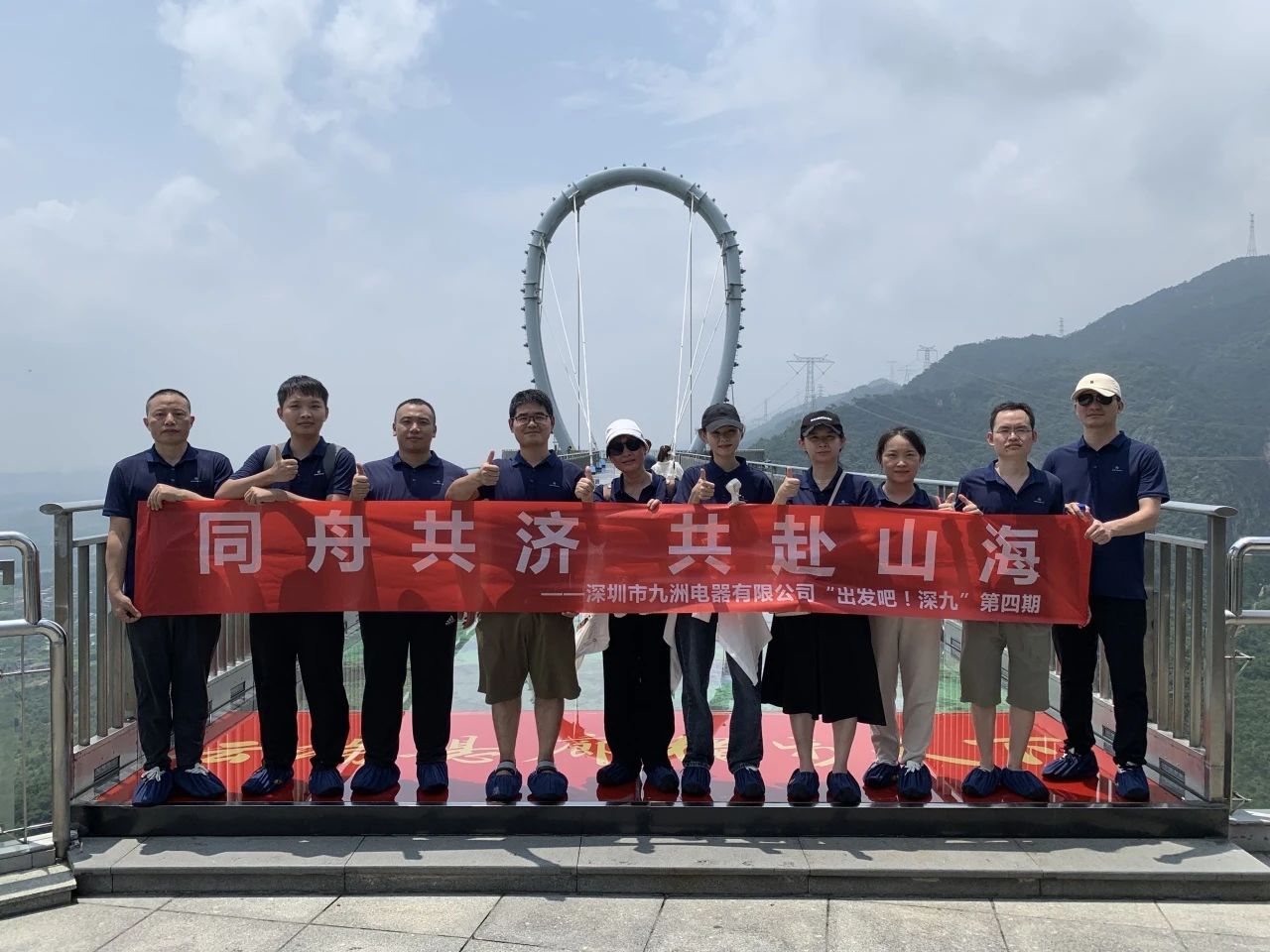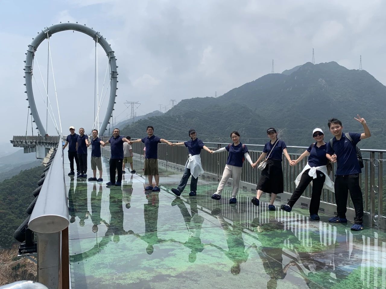 在藍(lán)天白云的映襯下,玻璃棧道宛如一顆璀璨的明珠鑲嵌在翠綠的山林之中;人事行政部的同事們毫不畏懼,攜手向前,繼續(xù)挑戰(zhàn)極限,走在玻璃棧道上,隨著每一步的前行,山谷與綠樹(shù)都在視野中展現(xiàn)得如詩(shī)如畫(huà),仿佛置身于云端,讓大家感受到了大自然的壯麗恢弘與人類(lèi)的智慧結(jié)晶。