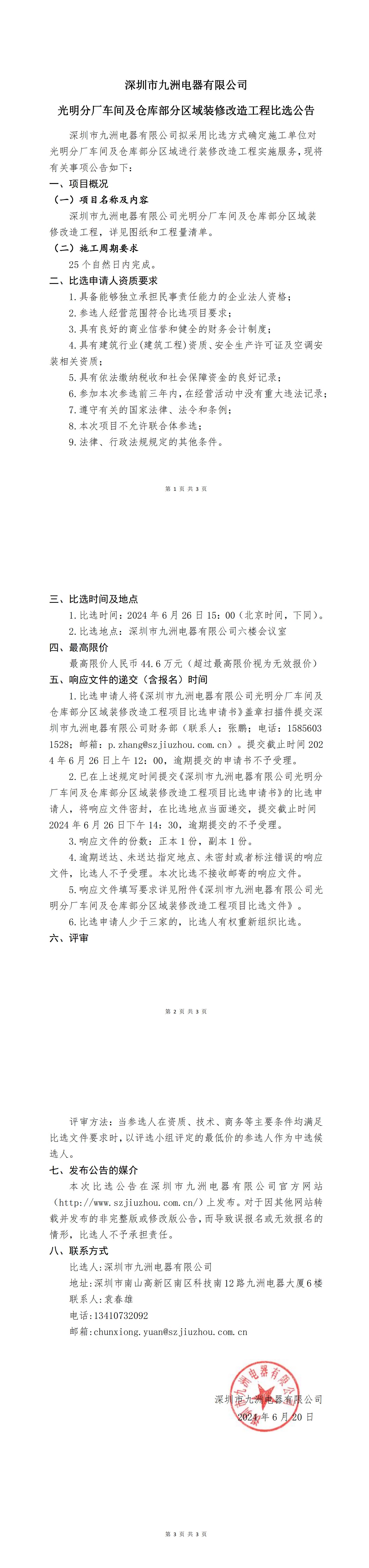深圳市九洲電器有限公司光明分廠車間及倉庫部分區(qū)域裝修改造工程項目比選文件.pdf