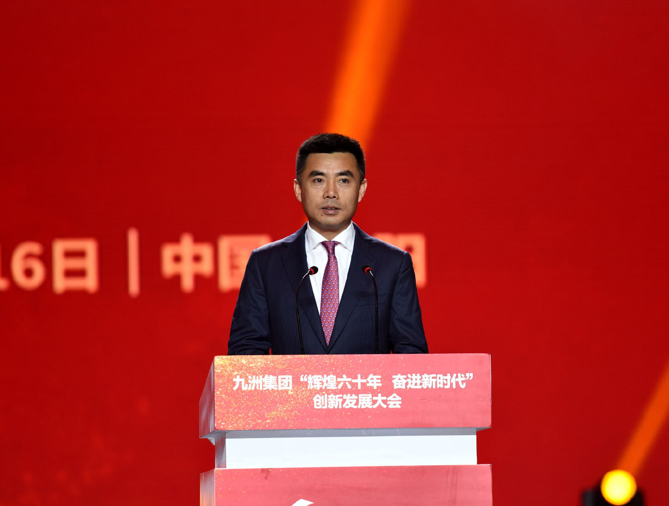 隨后,杜力平發(fā)表了題為《輝煌六十年,奮進新時代,實現(xiàn)“351”目標》的主題演講,發(fā)布了九洲未來發(fā)展戰(zhàn)略: