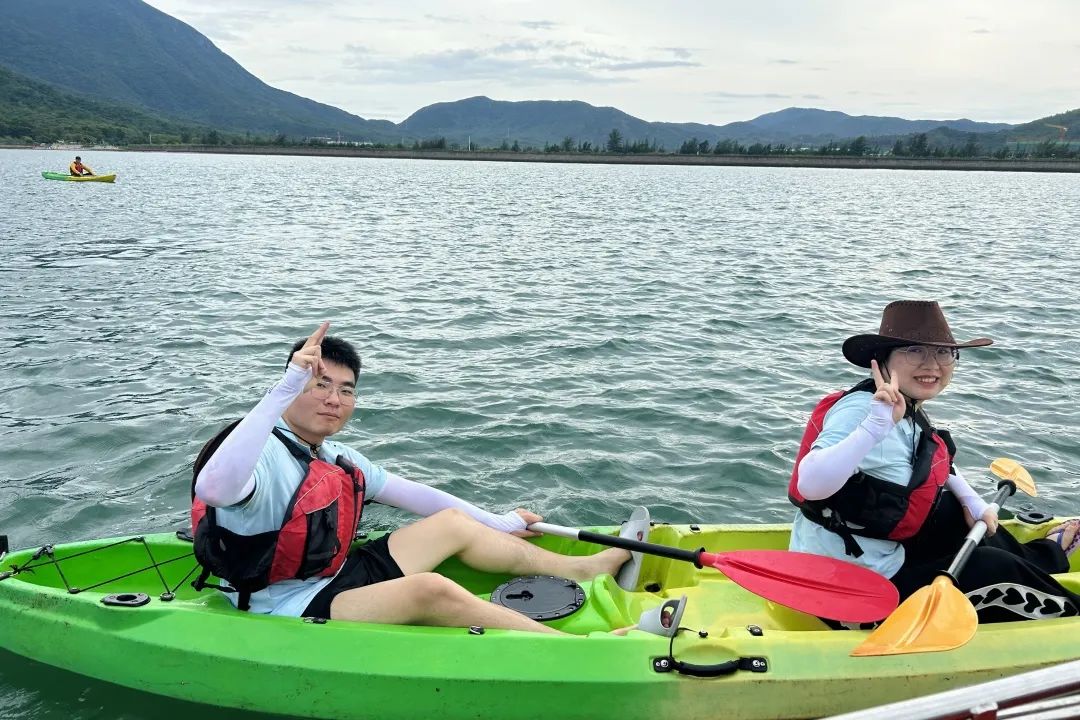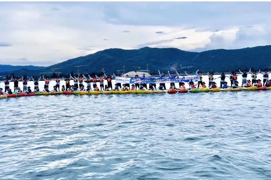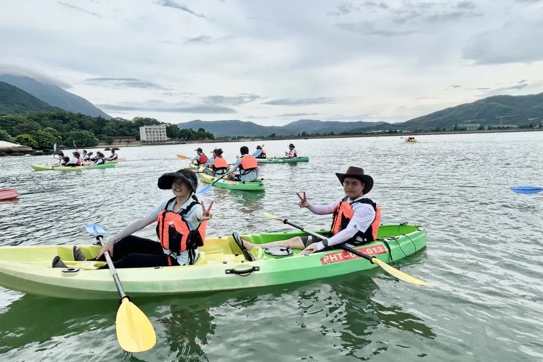 由專業(yè)的皮劃艇教練為大家做皮劃艇專業(yè)動作要領(lǐng)和安全注意事項的培訓,大家認真聆聽并迅速掌握要領(lǐng)。培訓結(jié)束后,大家躍躍欲試,穿上救生衣,踏上皮劃艇,撐起長船槳,自由練習,一陣陣歡聲笑語和整齊的“左、右、左、右...”打破了海面的平靜。