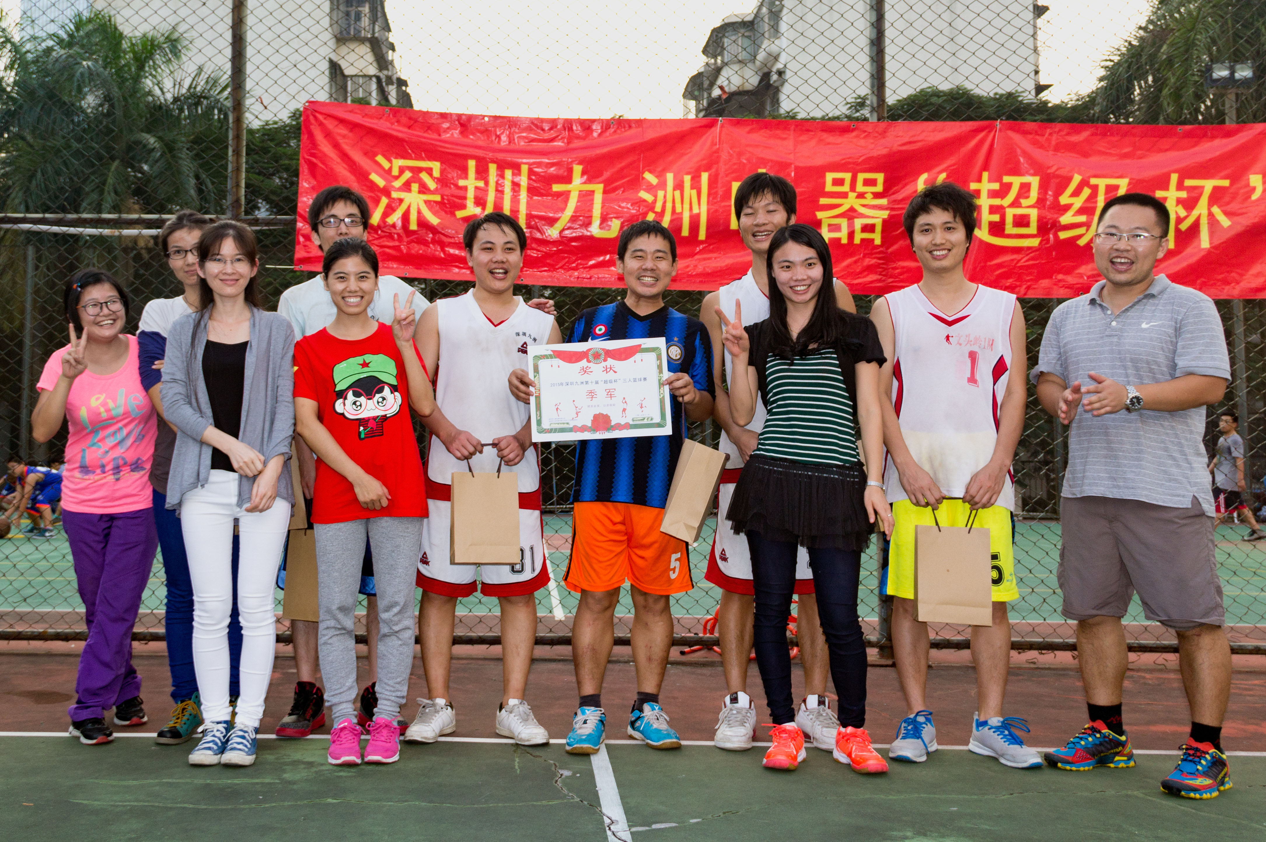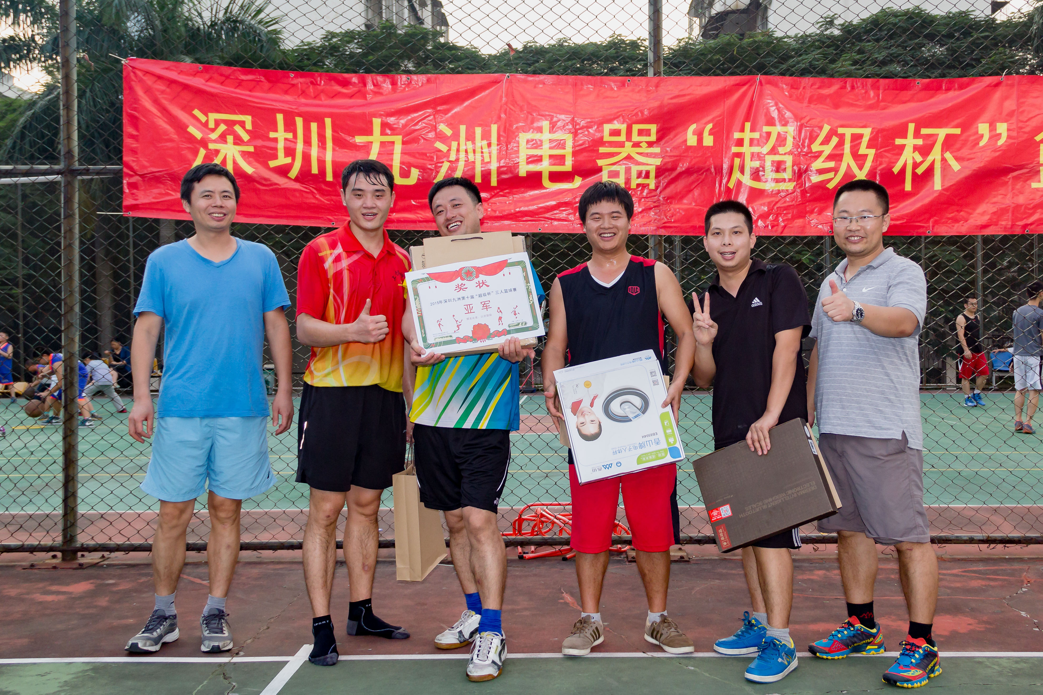 2015年11月14日,下午13時(shí),深圳九洲第八屆“超級(jí)杯”籃球賽隨著一聲哨響正式拉開(kāi)戰(zhàn)幕。 報(bào)名參加比賽有12支隊(duì)伍,分為4個(gè)小組進(jìn)行比賽淘汰制,運(yùn)動(dòng)員們?cè)趫?chǎng)下是親密無(wú)間的同事,在球場(chǎng)上卻是你爭(zhēng)我趕,不放過(guò)任何一個(gè)得分的機(jī)會(huì)。歡呼聲、喝彩聲此起彼伏,經(jīng)過(guò)3小時(shí)的艱苦鏖戰(zhàn),籃筐終結(jié)者憑借良好的團(tuán)隊(duì)配合和戰(zhàn)術(shù)運(yùn)用,最終獲得冠軍;亞軍“技術(shù)支持部”、季軍“515又浪”、3分球冠軍程炳財(cái),本屆籃球賽圓滿結(jié)束。