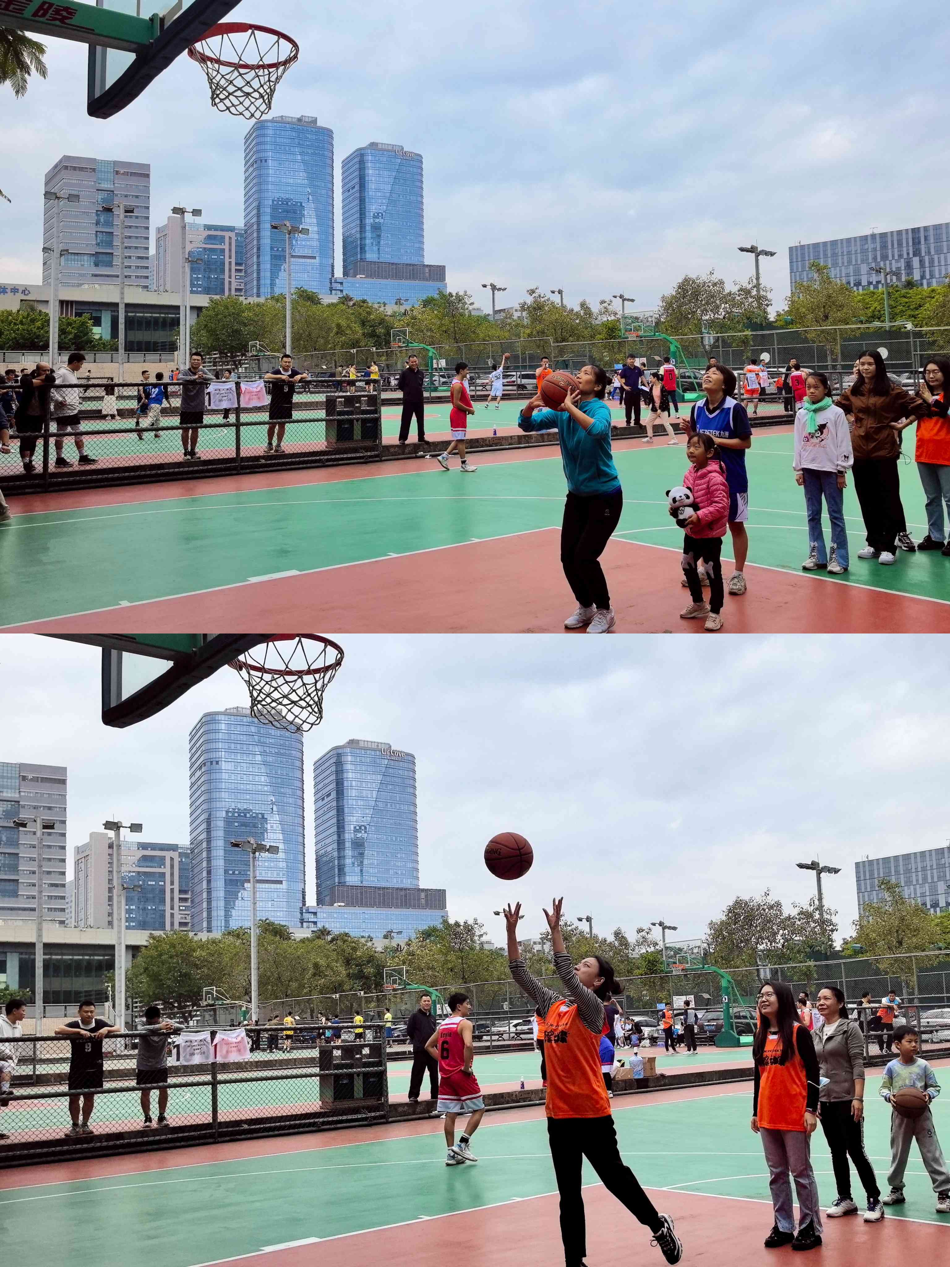 場上的女神們英姿颯爽、躍躍欲試、認真把握每次投籃機會,堅毅的眼神鎖定前方,兩腳蹬地,雙手發(fā)力,伸展腰腹將球拋向籃筐。