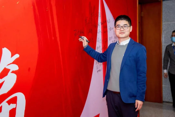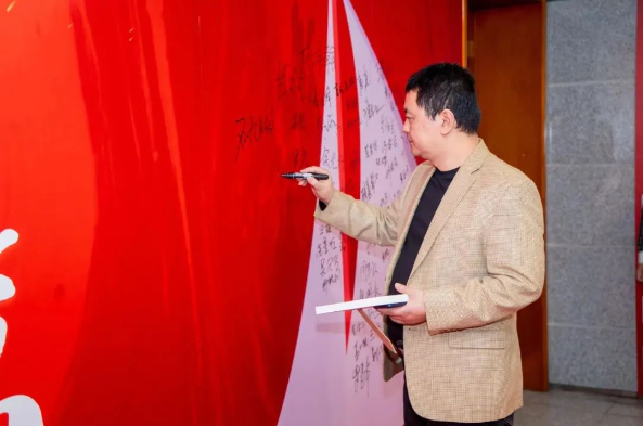 深九同仁們在主背景板處拍照打卡,留下幸福瞬間,并陸續(xù)在印有帆船形狀,寓意揚(yáng)帆起航的簽到板上簽名,代表著九洲人在新的一年攜手并進(jìn),乘風(fēng)破浪!