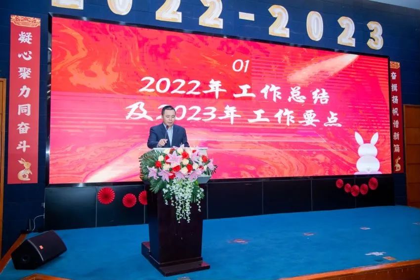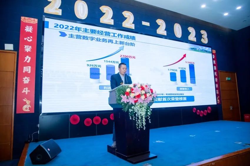 會(huì)上,深圳九洲電器董事長蘭盈杰發(fā)表了以《點(diǎn)燃?jí)粝?,一起成功》為主旨的重要講話。蘭董事長指出,我們用成功告別2022,用夢想點(diǎn)燃2023!2023年,公司將以“胸懷兩個(gè)市場,聚焦主航道,開辟新賽道,擴(kuò)大數(shù)字業(yè)務(wù)、突破創(chuàng)新業(yè)務(wù)、抓住機(jī)會(huì)業(yè)務(wù)”為經(jīng)營思路和策略,未來以“251”為發(fā)展目標(biāo),堅(jiān)定信心、保持定力,想干事、敢干事、敢成事,上下同心者必勝,讓我們共赴山海,一起成功,早日實(shí)現(xiàn)“百億深九夢”!