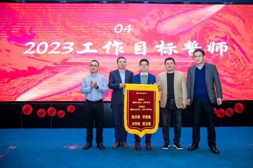 “征途萬里風(fēng)正勁,轉(zhuǎn)首關(guān)河氣象新”,為激勵(lì)深圳九洲電器實(shí)現(xiàn)目標(biāo),蘭董事長為公司管理團(tuán)隊(duì)授旗,韓總帶領(lǐng)管理團(tuán)隊(duì)進(jìn)行宣誓,誓言錚錚、一言九鼎。深九人吹響了沖鋒的號(hào)角,雷響了沖刺的戰(zhàn)鼓,我們必將在2023年的戰(zhàn)場上全力以赴,圓滿完成任務(wù)!