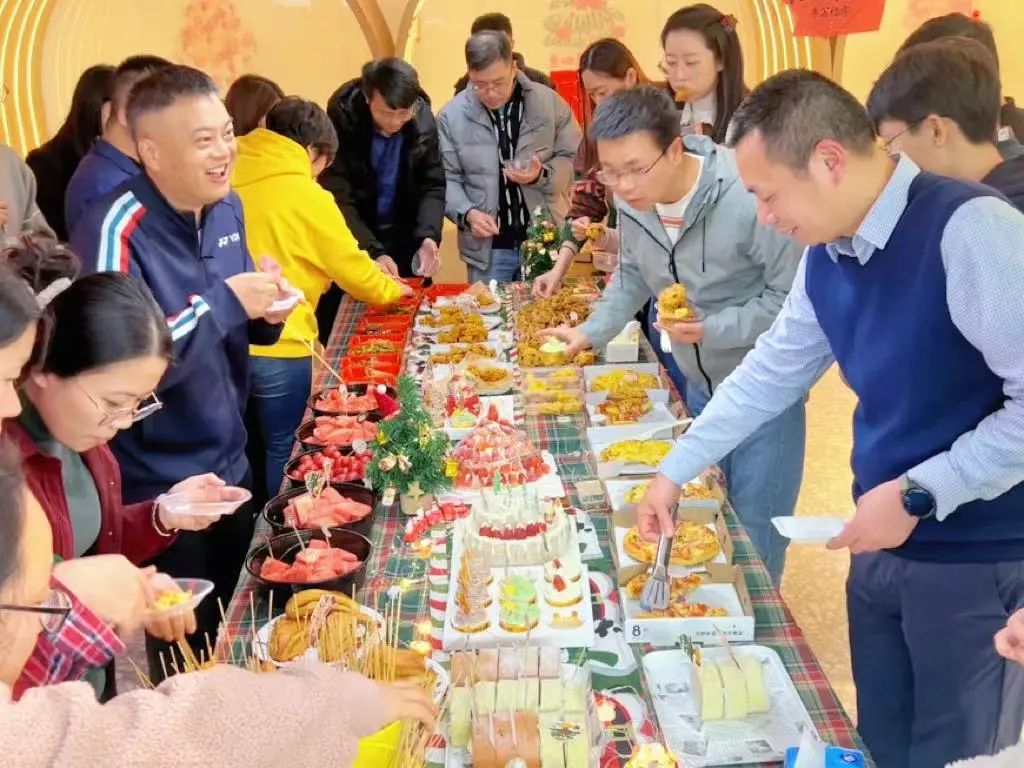 各式甜點(diǎn)、蛋糕、果汁等貼心的下午茶歇,凸顯了節(jié)日氛圍,緩解了工作壓力,增進(jìn)同事間的感情。