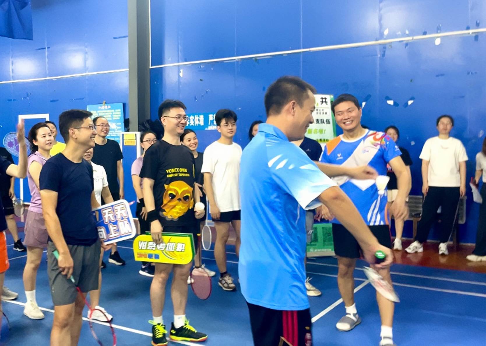 比賽正式開始,平時(shí)在工作中干勁十足的同事們,在球場(chǎng)上同樣的斗志昂揚(yáng)。你來(lái)我往,你守我攻;小小的羽毛球在持續(xù)的擊打聲中,劃過(guò)一道道白色的弧線;一次次揮臂、跨步、登跳、吊球、扣殺,都充滿力量、熱血沸騰。加油聲此起彼伏,活動(dòng)熱度持續(xù)升溫、現(xiàn)場(chǎng)氛圍更是愈發(fā)熱烈。