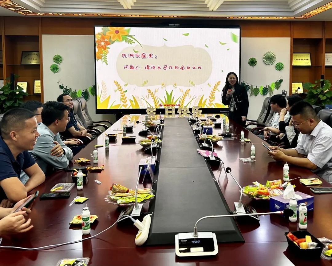 游戲環(huán)節(jié),氛圍熱烈,充滿(mǎn)歡聲笑語(yǔ)。壽星們組建“春意盎然”、“春風(fēng)拂面”、“春暖花開(kāi)”、“春光明媚”四支隊(duì)伍,完成“春天里”、“九洲反應(yīng)王”、“唱響春天”這些游戲挑戰(zhàn)。游戲中融入了“春”和“深九文化”等元素,讓壽星們?cè)趭蕵?lè)的同時(shí),還感受到公司的溫暖和公司文化帶來(lái)的正能量。