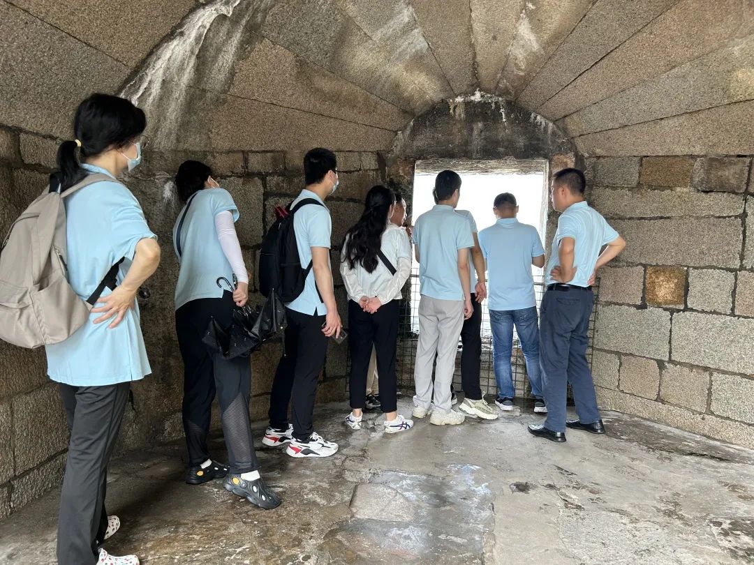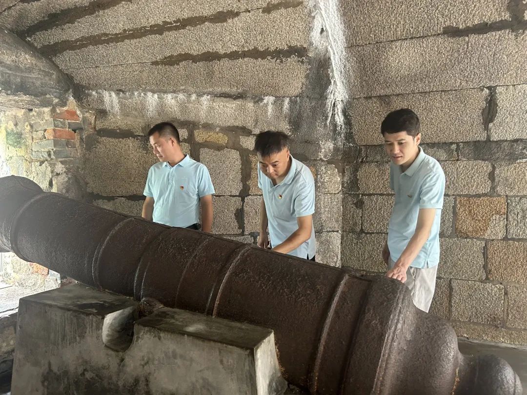 “遙觀碧海出滄灣,滾滾波流過峽關(guān)”,平靜的海面曾經(jīng)炮火紛飛,威遠(yuǎn)炮臺歷盡風(fēng)雨洗禮,黨員們用手輕撫著他,感受著歷史的溫度,是那么蒼涼、悲壯,仿佛愛國英雄關(guān)天培誓死守護(hù)炮臺、守護(hù)國土的一幕重現(xiàn)。