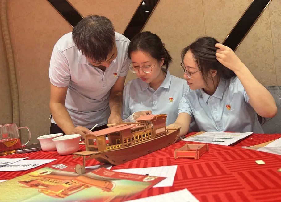 下午,黨員們開始了“重返1921”紅色劇本研讀活動(dòng),旨在注入黨史學(xué)習(xí)年輕態(tài),解鎖主題黨日新模式,主要分為“星星之火-前往上海”、“七月流火-望志路106號”、“八月驕陽-嘉興南湖紅船”等內(nèi)容,通過觸發(fā)任務(wù)、全員解密、紅船制作、劇本演繹等沉浸式體驗(yàn),帶領(lǐng)黨員們穿越歷史時(shí)空,走進(jìn)崢嶸歲月,感悟黨史,感悟紅色文化,致敬革命先輩,汲取奮進(jìn)力量。