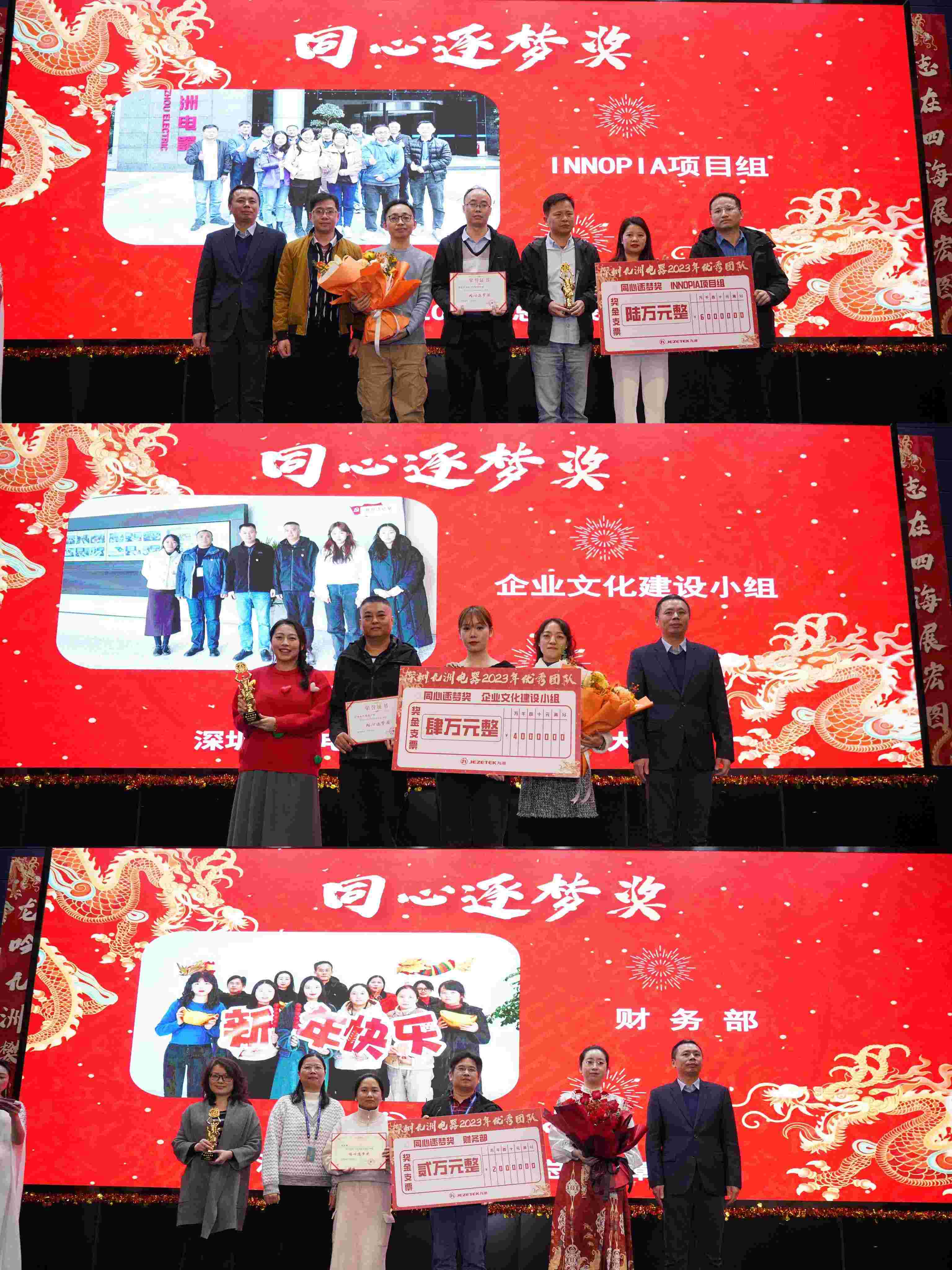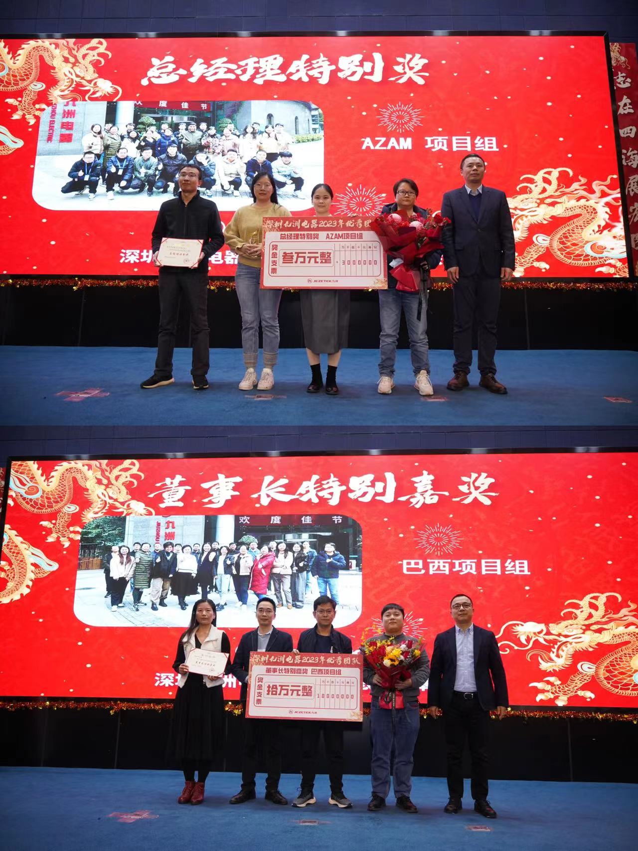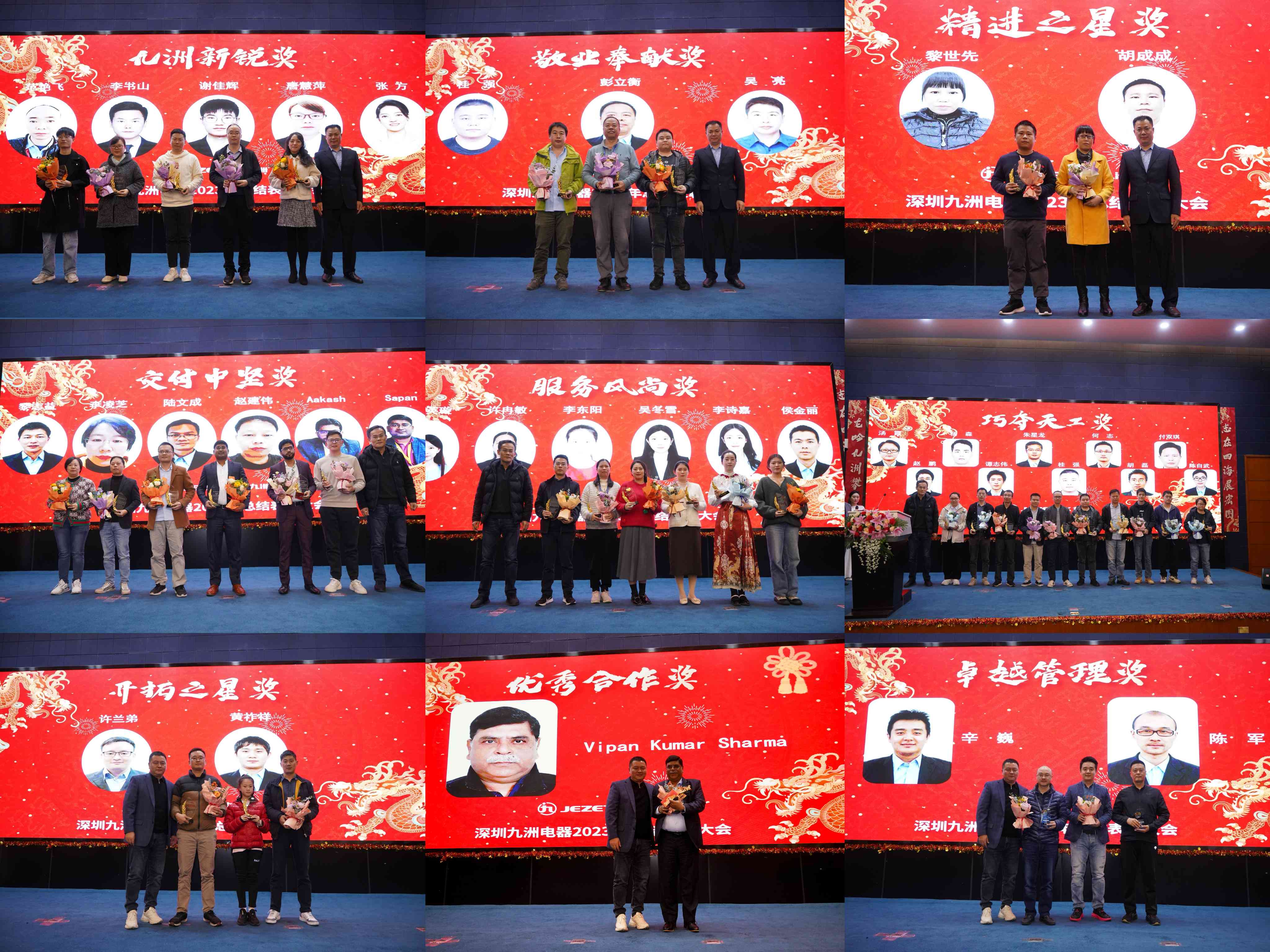 回首2023年,深圳九洲電器全體員工充分發(fā)揚整體至上、認真較真、勤勉敬業(yè)的精神,為公司作出了重要貢獻,為表彰先進,激勵前進、再接再厲,公司副總經(jīng)理夏兵宣讀了表彰文件,公司領(lǐng)導(dǎo)分別為獲獎?wù)哳C獎。