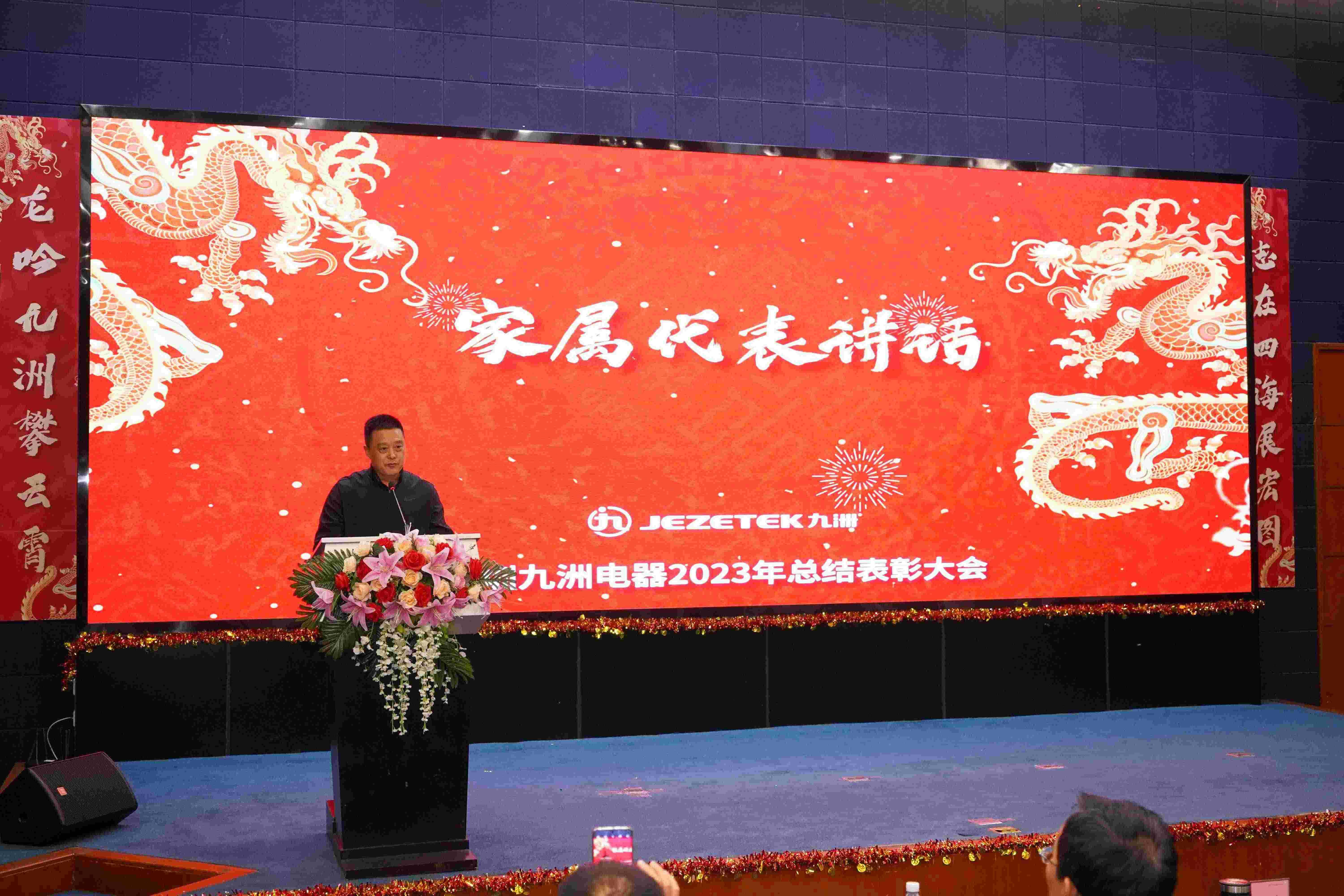 成績的取得離不開廣大員工的辛勤付出和集體智慧,更離不開九洲家屬們的默默奉獻,家企攜手同心,共筑美好未來,公司數(shù)字產(chǎn)品線副總經(jīng)理辛巍的父親作為家屬代表發(fā)言。他對公司給予辛巍發(fā)展平臺和機會表示感謝,對公司取得的驕人成績而自豪,表示將一如既往地支持工作,相信公司在領(lǐng)導(dǎo)的帶領(lǐng)下,在大家的共同努力下,將會取得更大的成績。
