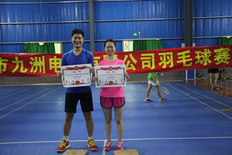 為豐富公司業(yè)余活動(dòng),活躍企業(yè)文化建設(shè),深圳市九洲電器有限公司一年一度的第九屆羽毛球友誼賽于2017年7月29日科技園文體中心羽毛球館拉開了序幕,公司各部門職員積極參加,同時(shí)我們盛情邀請(qǐng)了九洲傳媒、九洲控股2支隊(duì)伍參加比賽,總共報(bào)名參加比賽的有11支隊(duì)伍,本次的比賽分設(shè)項(xiàng)目有:男單、女單、男雙、混雙四個(gè)項(xiàng)目,另增加了男女MVP,表彰單打出色的選手。